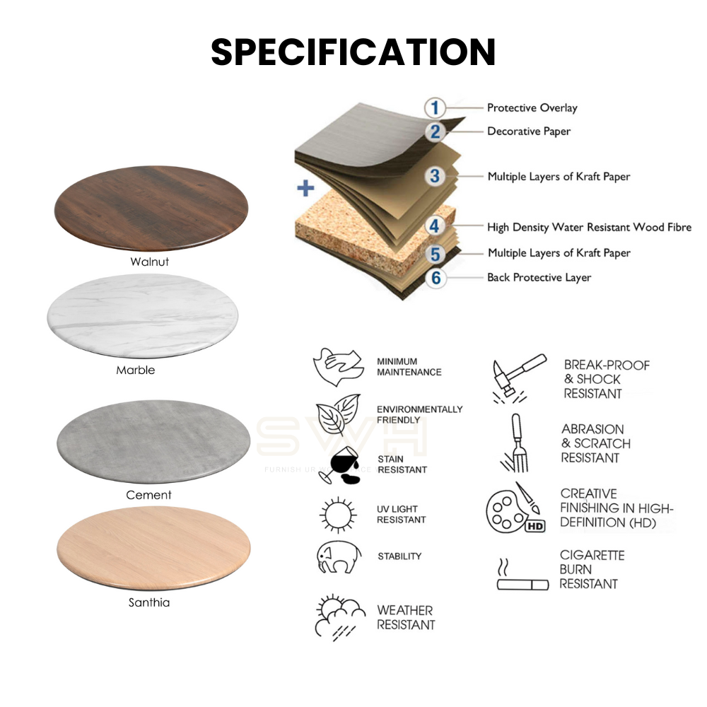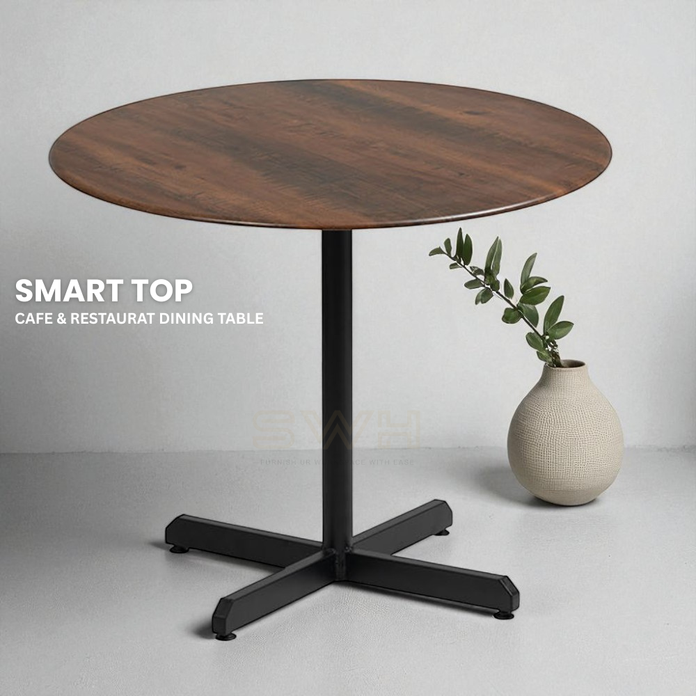 Round Dining Table ( SMART TOP : Walnut ) | Perfect For Cafe & Restaurant