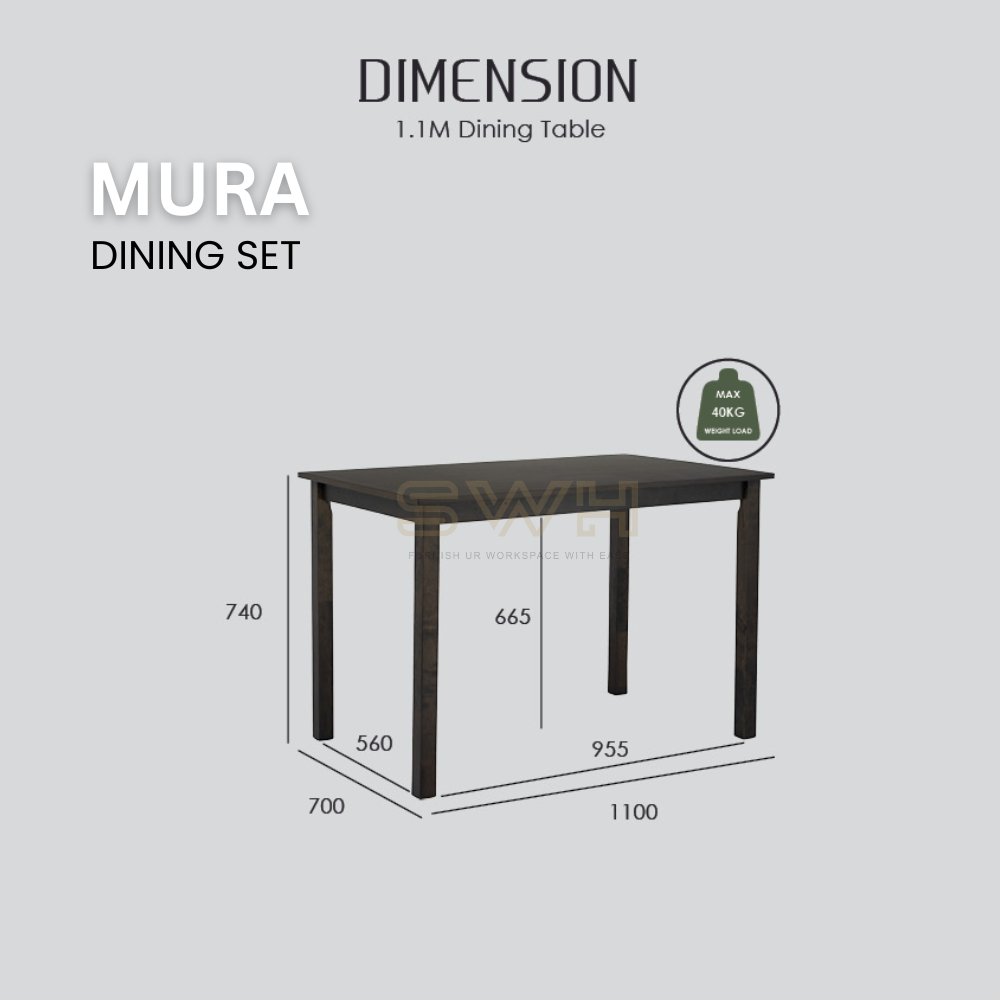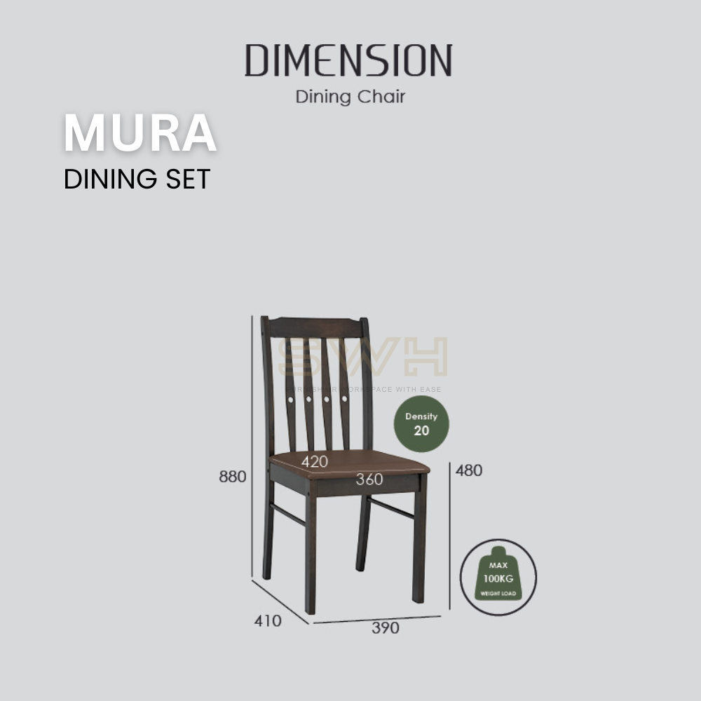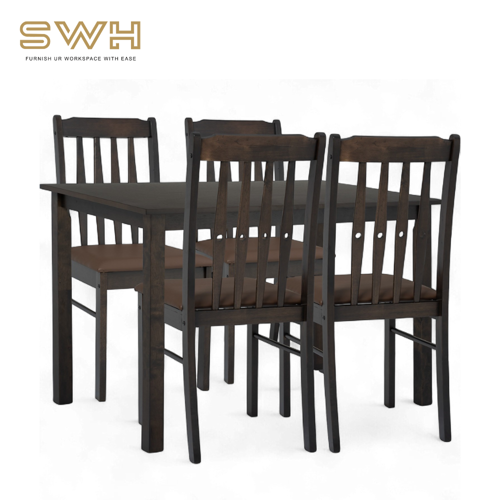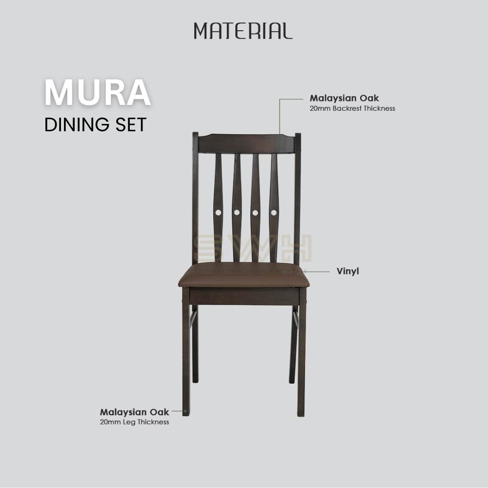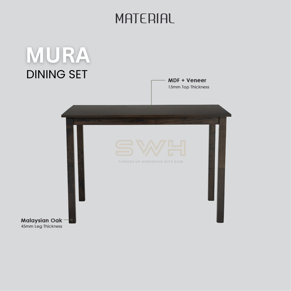 Upgrade your dining space with the MURA 1+4 Dining Set, designed for both home and commercial use. With its Malaysian Oak frame and rich Dark Chestnut finish, this set combines natural charm with modern durability—perfect for cafes, restaurants, and stylish home dining rooms.